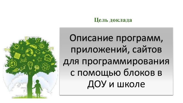 3. Цель доклада Описание программ, приложений, сайтов для программирования с помощью блоков в ДОУ и школе