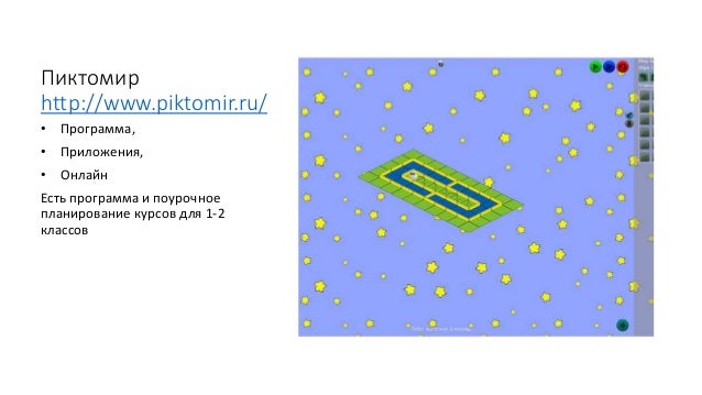 5. Пиктомир http://www.piktomir.ru/ • Программа, • Приложения, • Онлайн Есть программа и поурочное планирование курсов для 1-2 классов