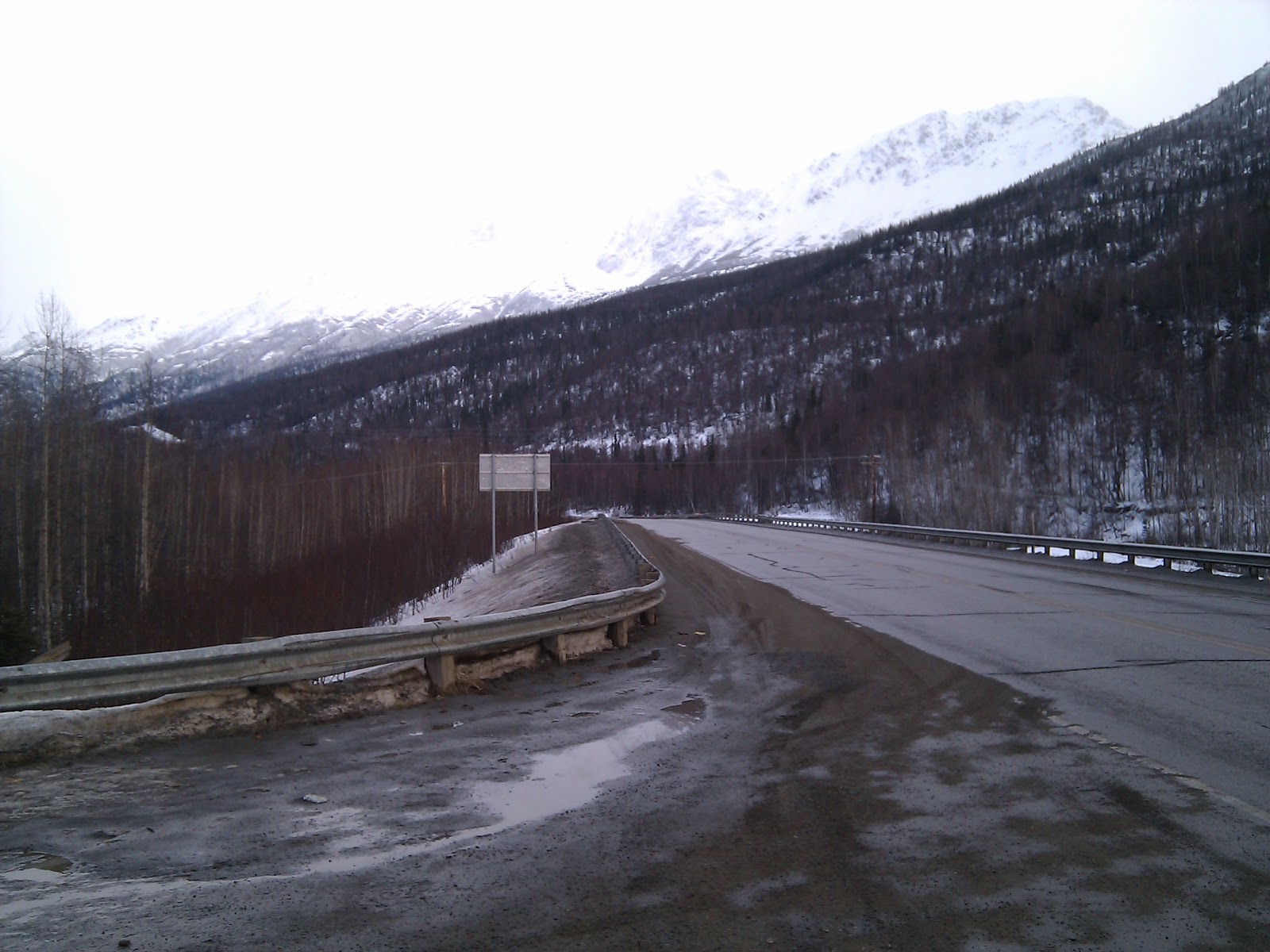 I chose to to take the old glenn (again) you would think I would have learned my lesson last week, but, I had a stop to make in the Butte, and it seemed logical. Though the road was wet from melt and rain all the way, I didnt detect that is was overly slippery. I stopped a few times