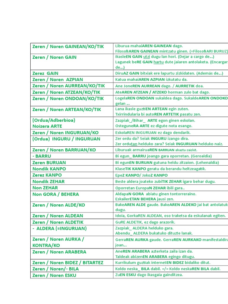 Postposizioak- Adibideak