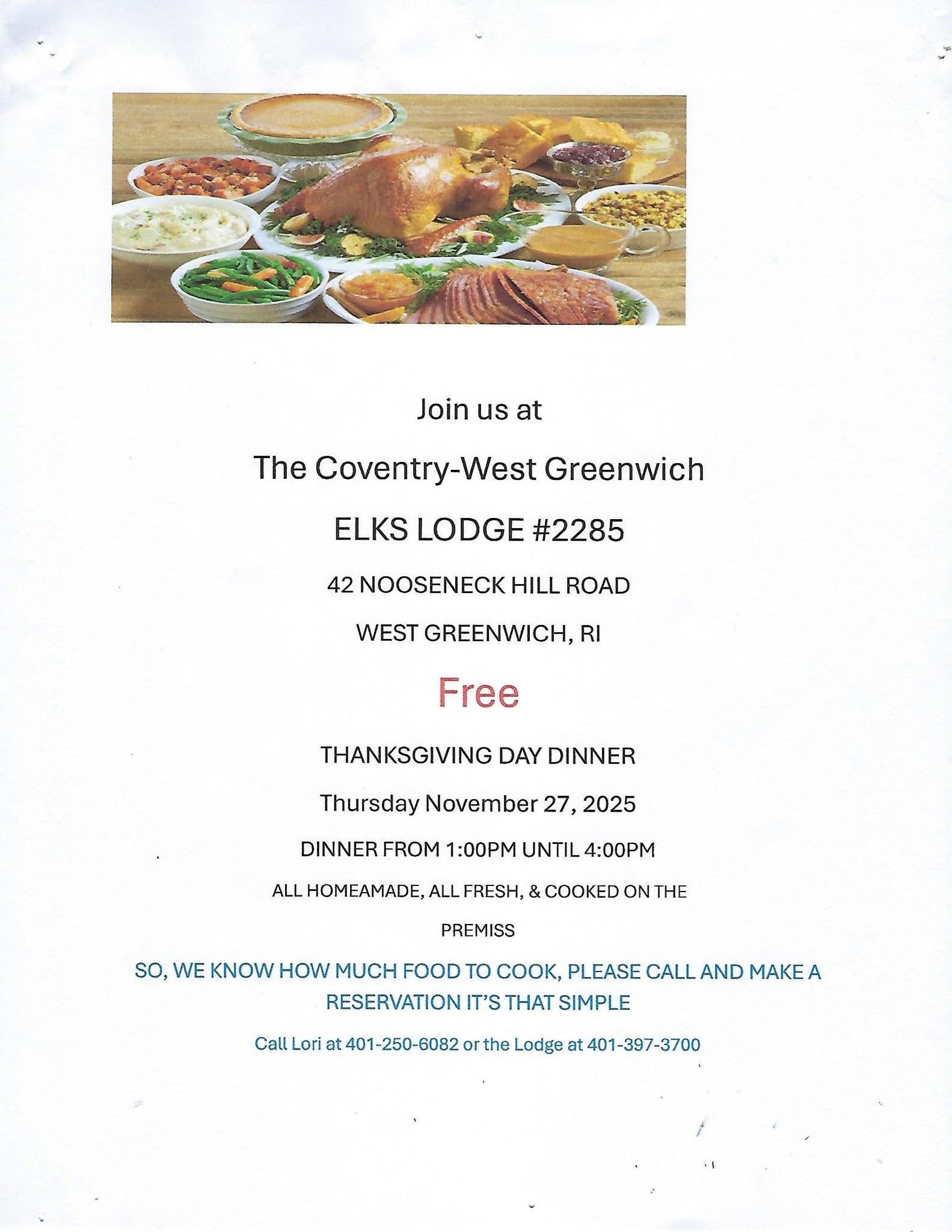 FREE Thanksgiving Dinner: https://core-docs.s3.us-east-1.amazonaws.com/documents/asset/uploaded_file/553/EWGRSD/6128679/FREE_Thanksgiving_Dinner_Elks_Lodge_2285.JPG