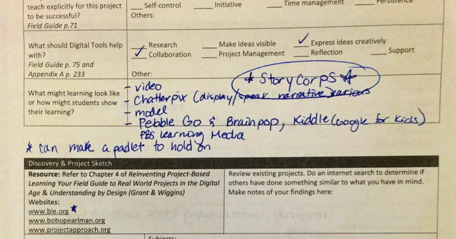 Project Based Learning (service learning experiences, engineering design, scientific studies, science fair projects)