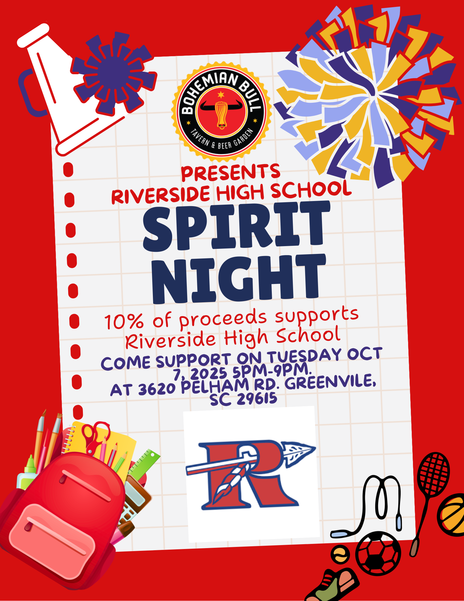 Riverside High School's Spirit Week 2025 is Here. Please see all linked information and calendars to help support Veterans Are Heroes. Please see the Parents Guide to Spirit Week and the Silent Auction.