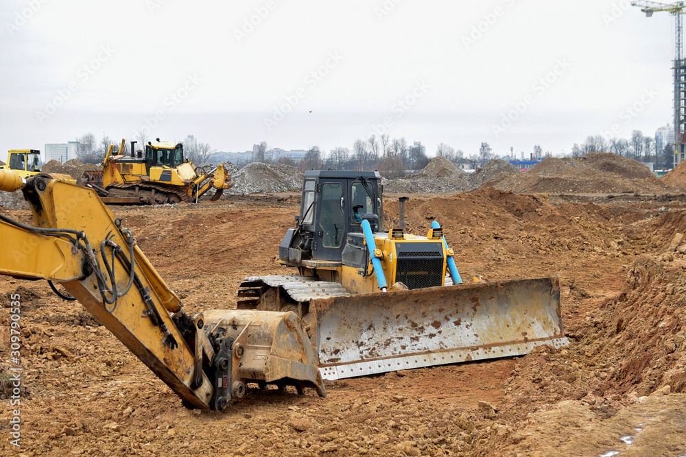 Excavator and Bulldozer on the Construction Site. https://as2.ftcdn.net/v2/jpg/03/09/79/05/1000_F_309790535_u6C7CZkAAdCc6Qy385N9vU0keLseDFTy.jpg