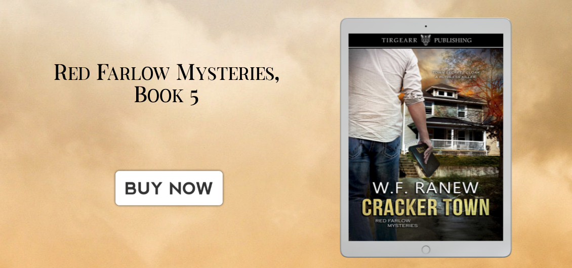 W.F. Ranew writes the Red Farlow Mysteries series from Tirgearr Publishing, the latest of which is book five, Cracker Town.