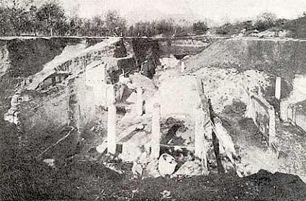 The villa, excavated in 1900 (a contemporary photograph is shown below), derives its