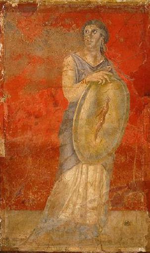 playing a kithara (pictured upper left). Behind her stands a young girl,