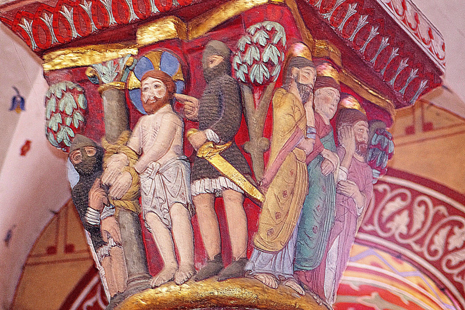 Le chapiteau le plus connu est celui de la dernière Cène reconnaissable à la nappe qui entoure la corbeille du chapiteau.
