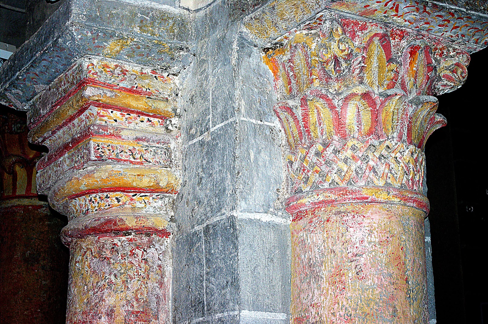 Les chapiteaux du rond-point représentent les saintes femmes au tombeau, la Passion du Christ, la descente aux limbes et la Transfiguration.