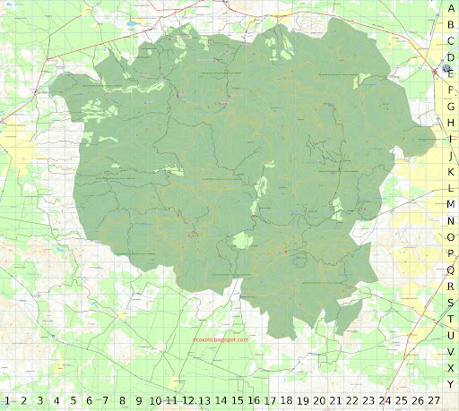 Para el verano del 2009 se establecieron 9 polígonos iniciales para realizar actividad de campo. Al agrandar la imagen se puede apreciar la ubicación de cada uno de ellos dentro del Bosque. Los recorridos son normalmente realizados a pie pero para llegar a algunos de ellos fué necesario recurrir al uso de la bicicleta.