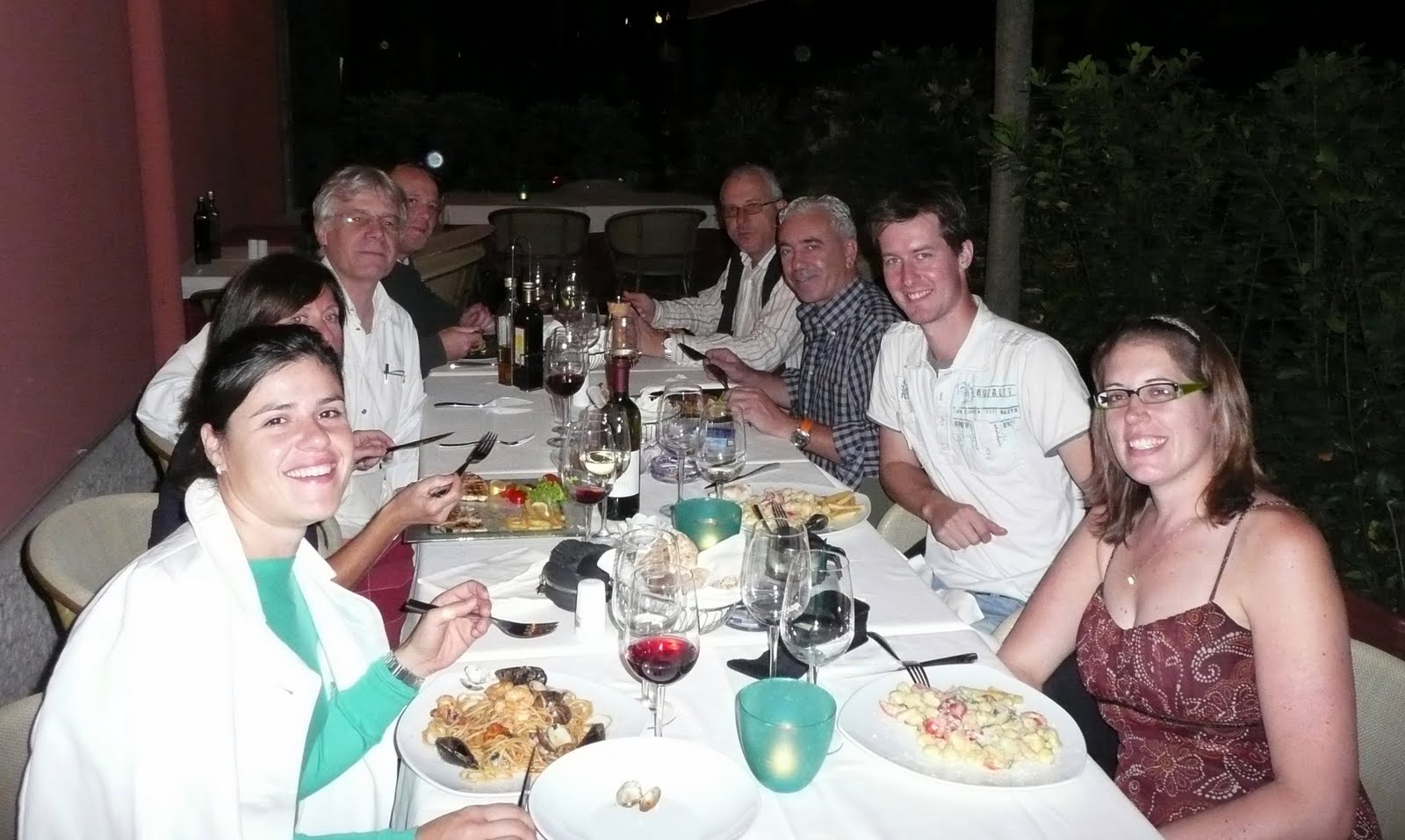 Lake Garda is like Sylvan Lake but larger, with better food and a much warmer Lake (20 C). There are many amusement parks including Gardaland and Movieland. There is also a water park. The local bus service is a coach bus that had really comfy seats. We arrived in time to attend the Wine Festival in Lake Garda. People wander around in groups with wine glasses strung around their necks in little pouches. Most people receive an entire bottle of wine which they drink themselves or share with a group of friends. The host couple that Colin and I stayed with, Samantha and Tiziano (met them through homeexchange.com) took us out the first night to the wine festival. We met their friends and enjoyed many nice wines.