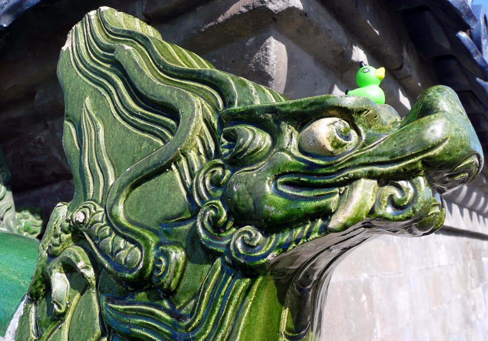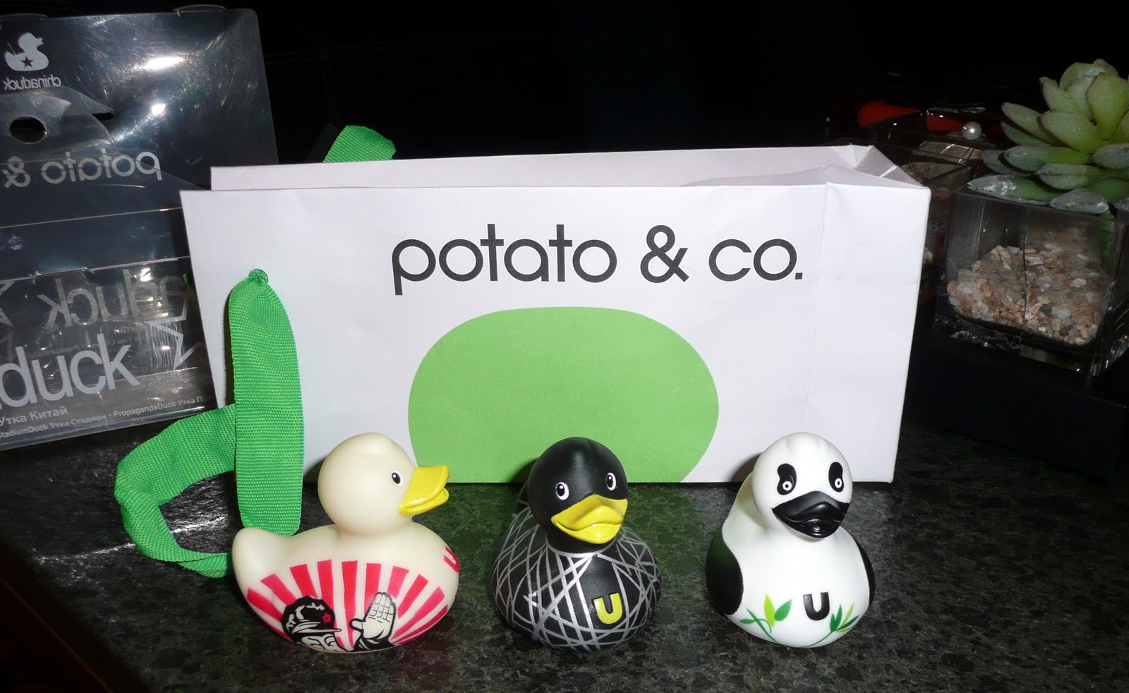 Since we're in China where almost everything in the world is made, but where most items are exported and not sold in China, I wondered if I would find a rubber duck or not. At least 3/4's of my collection say "Made in China" on the bottom. On Saturday, Oct 31, 2009 we visited a mall called Solana's and a store called Potato & Co. and I found my Bud dudcks. For 71 Yuan (10 cdn) I bought Propaganda, Stadium, and Panda duck. The Propaganda duck is my favourite since it most accurately describes China.