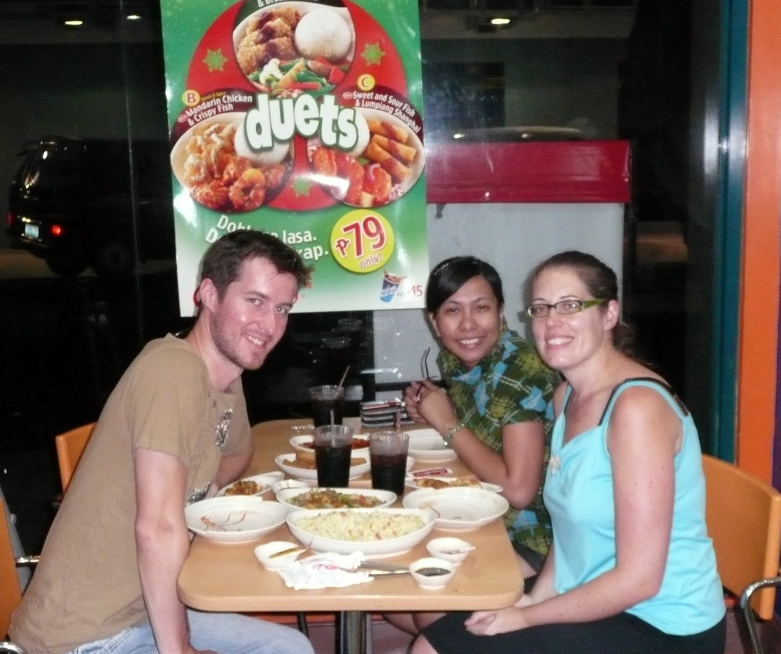 Colin and I have always dreamed of being somewhere tropical for Christmas and in 2009 we made it a reality by spending Christmas with Liam and her family in +30 sunny weather. While we both really enjoyed learning about the Christmas traditions in Manila, I don't think we'd spend Christmas away from our family again. After all, Christmas really is about spending quality time with your family (but if you're religious it's about Jesus). We were able to embrace one of our traditions while we were away and that was to have Chinese food on Christmas Eve. We went to Chow King for supper with Carol. It was cheap, but tasty Chinese food.