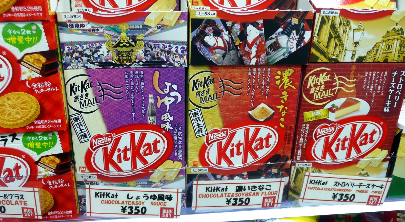 There are various funky flavours of Kit Kat available in Japan. We saw the following flavours: