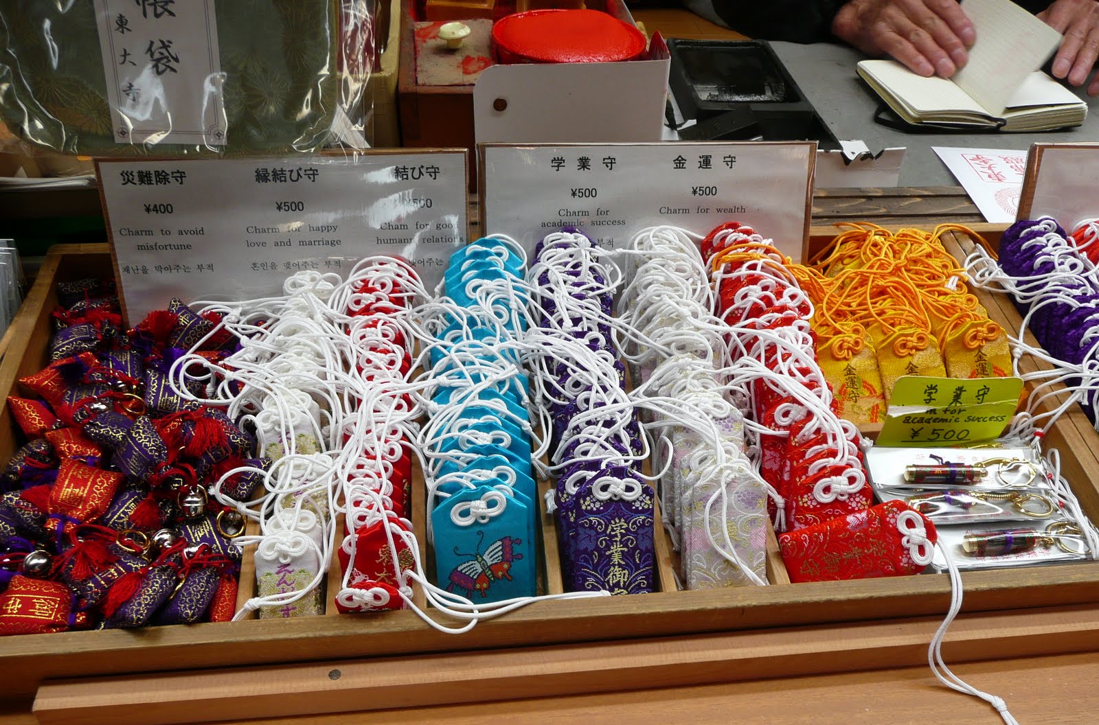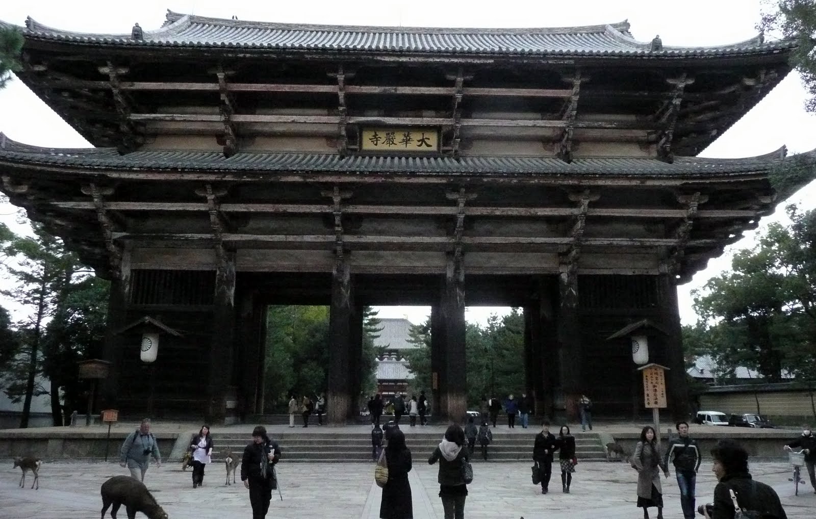 We visited Todaiji Temple which is the largest wooden structure in the world. It also contains the great buddha of Nara which is the largest buddha in Japan. Inside the temple, various good luck charms were for sale. We saw people selling travel accident, traffic accident, good marriage, friends, etc charms. We didn't buy any, but we did have our fortunes written in Kanji.