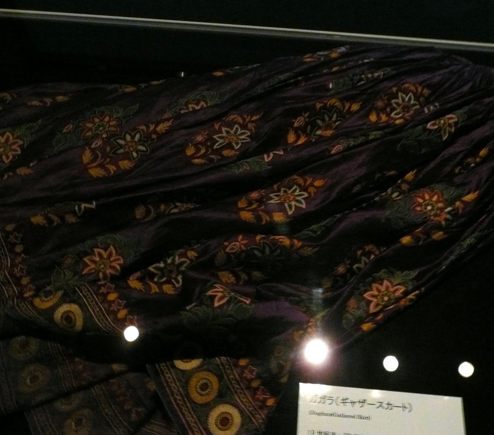 After we arrived in Kobe (a rather rich looking city), we walked to Rokko island to visit the Fashion Museum. I have wanted to visit a fashion museum since the start of our trip and I was so happy to finally have the opportunity to see one. I read an article about kawaii (cute) fashion and the fashion museum in Kobe in the Kansai scene magazine. It stated that most Japanese could not talk about their childhoods before WWII. Therefore, there is a desire to be drawn to cute things in the present fashion world. After the war people liked the simple designs of Louis Vutton. As western attitudes, clothes and imperialism swept in, people stopped wearing kimonos and started wearing other clothes to express themselves. The museum had beautiful kimonos on display as well as ghaghara which are gathered skirts that royal families and noble women in India wore. The bigger the skirt the the richer the person.