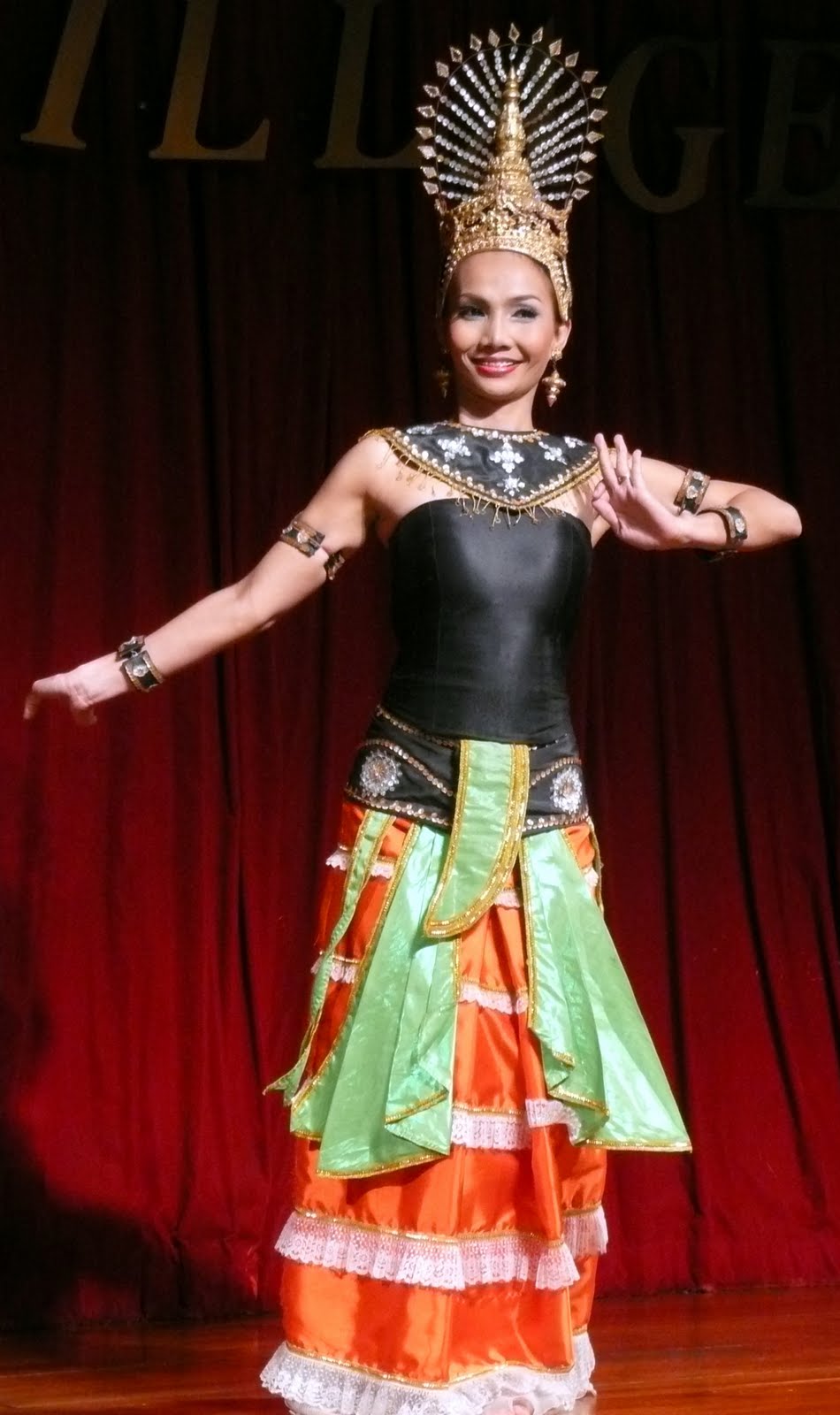 After experiencing the authentic floating market, we had the desire to watch a performance of traditional Thai dance. Okay, I confess, I really only wanted to see traditional Thai dance so that I could see women dressed in the gorgeous costumes and elaborate, tall gold crowns on top of their heads. All Thai dancers must be double-jointed or something because I've never seen people who are capable of bending their fingers that far back. During the dance, body parts are moved in a slow, steady, smooth, and fluid movements. Parts of the dances reminded me of Hawaiian dancing. The dances that was saw coordinated the use of various props such as swords and umbrellas. It takes a lot of talent and coordination to be a Thai dancer. I don't think I could to it, but it was beautiful to watch them float across the stage.