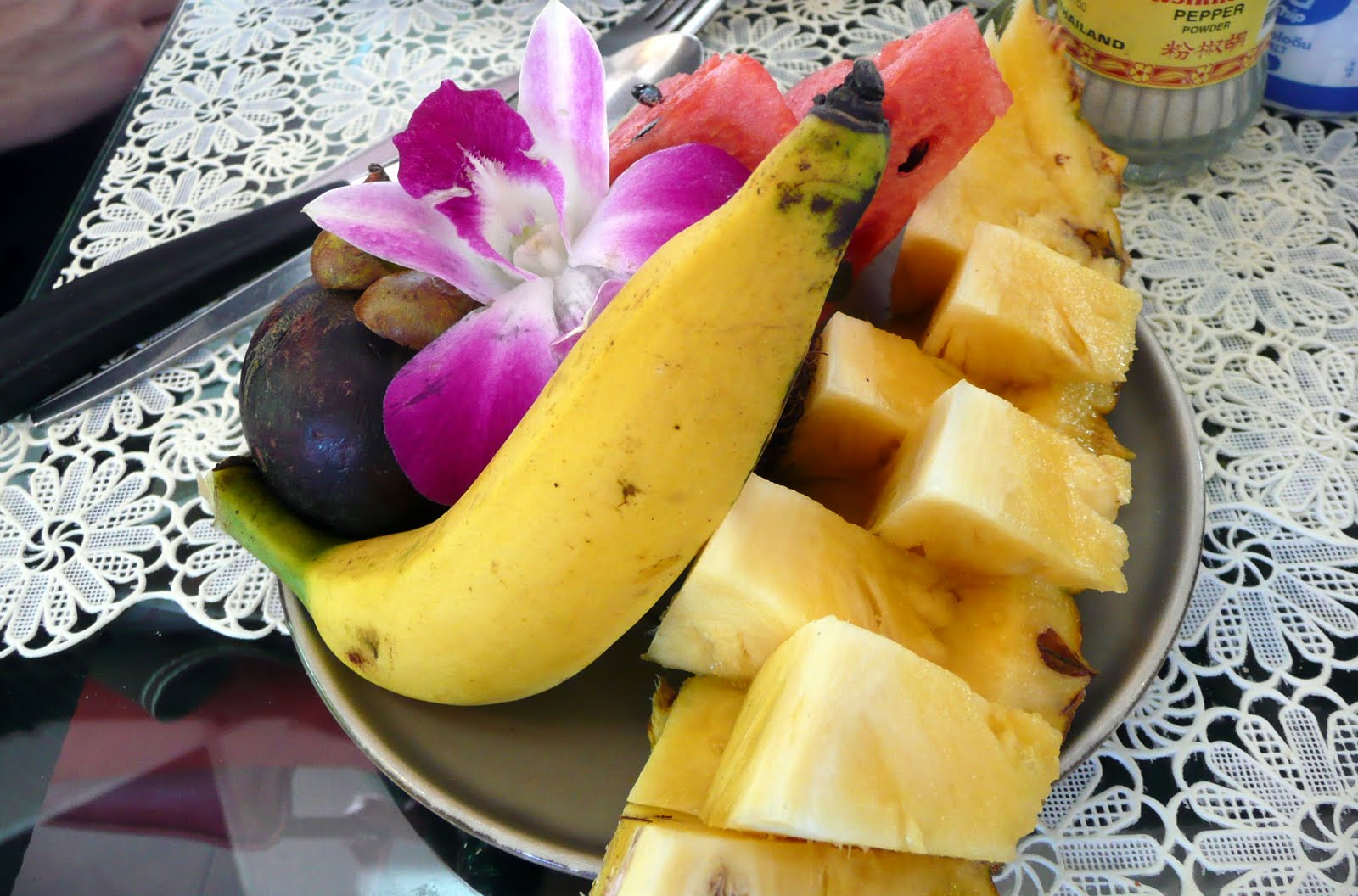 Our favourite restaurant to eat at was Po. It's located two blocks from the 3rd Street Guesthouse Cafe where we stayed. They serve affordable and delicious Thai and Western food. We ate almost every meal at their restaurant. I think it was a family run business and at the end of each meal you're given a free tropical fruit platter for dessert.