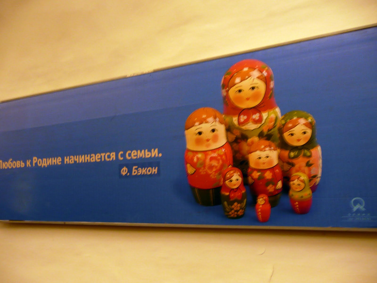 When we were with our guide, she saw me take a picture of an ad that showed a family of Russian nesting dolls and she translated the ad as meaning "In order to love the motherland you must love your family."
