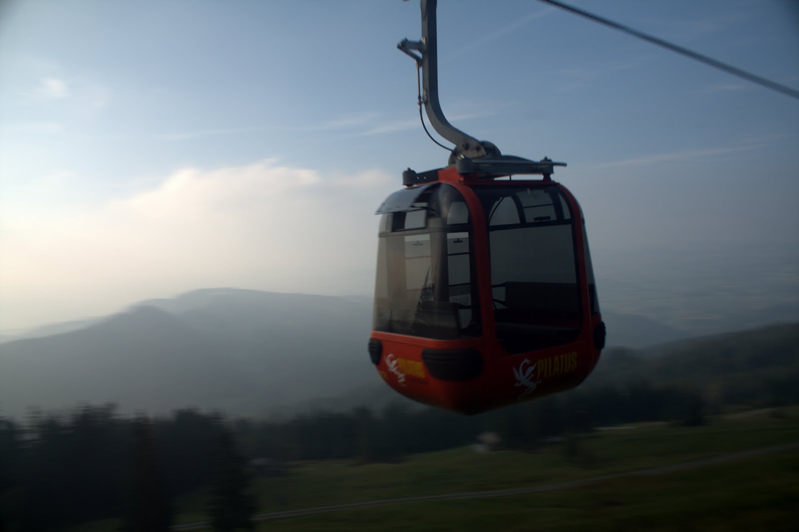 We couldn't visit Switzerland without going up one of the many mountains that surround Lake Luzern. On Tuesday, Sept 29, 2009 we did the Mt. Pilatus Golden Round Trip. We took a scenic boat ride for 90 minutes to the base of the mountain. We had fabulous views of the green rolling hills and many mountains and nice houses that surround the Lake. Next, we took the steepest cograilway in the world to the top of Pilatus-Kulm. The rollercoaster climbed for 40 minutes and I kept waiting for the drop but thankfully it never came. We sat in the back so we had a lovely view down the moutntain.