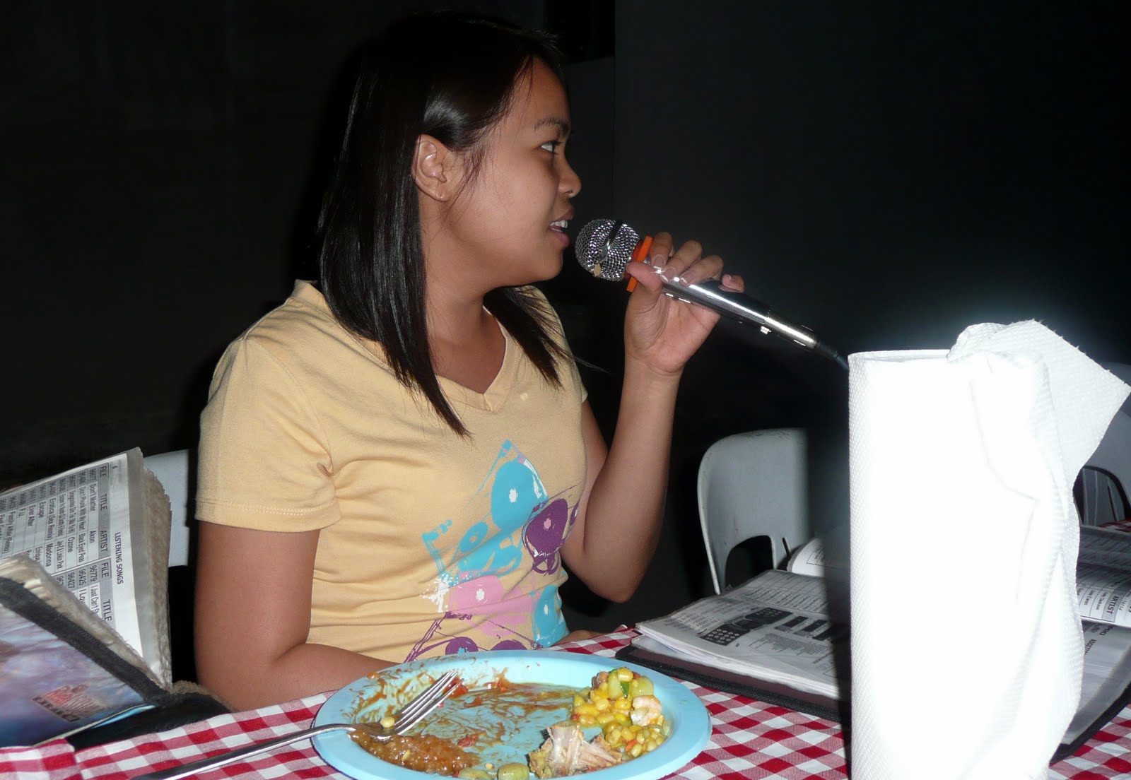 There were many songs to choose from including Black Eyed Peas songs and old dance songs such as "Saturday Night" by Whigfield and "Runaway Train" by Soul Asylum. Colin sang a duet with me to "Closing Time" by Semisonic. We even got to hear a few sappy love songs sang in Tagalog by Glenda's uncle too. He was really good.