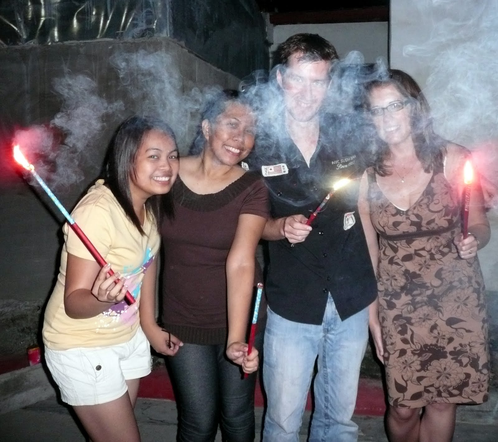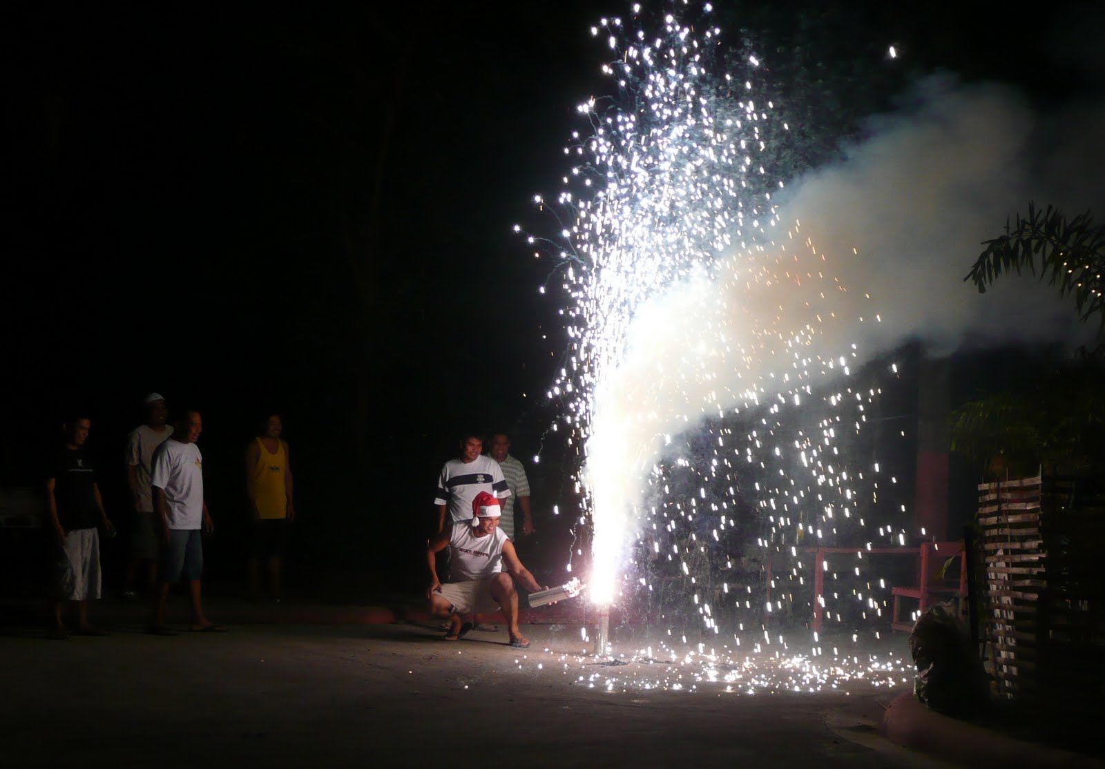 Between December 24th and January 1st, 2010 in Manila, there were 597 injuries from fire works. Thankfully there were no injuries on new year's eve in Glenda's family's area. There were many fireworks and firecrackers set off throughout the entire night. Many of them looked quite dangerous. If a firework didn't light most people just kept trying to light it over and over again. Therefore, when it does light, the firework is usually about to go off. Also, people don't stand very far away while the fireworks are going off and many of them don't go off the first time.