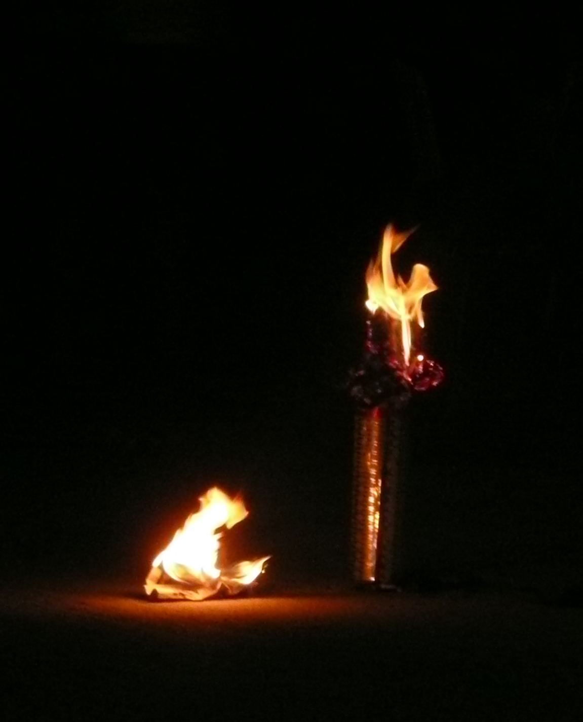 Our second favourite fireworks were on a stick and they shoot up into the air at an odd angle. Some of these fireworks looked like they were pretty close to going into people's open windows too. Our first favourite firework was juddha's belt. It's a few meters long and looks like a long mop. Once it's lit, a series of tiny fireworks that are loud enough to make you deaf go off for about 5 minutes. Afterwords, you're left with a pile of debris that looks like leaves and newspapers. You can see a video of this type of firework below.
