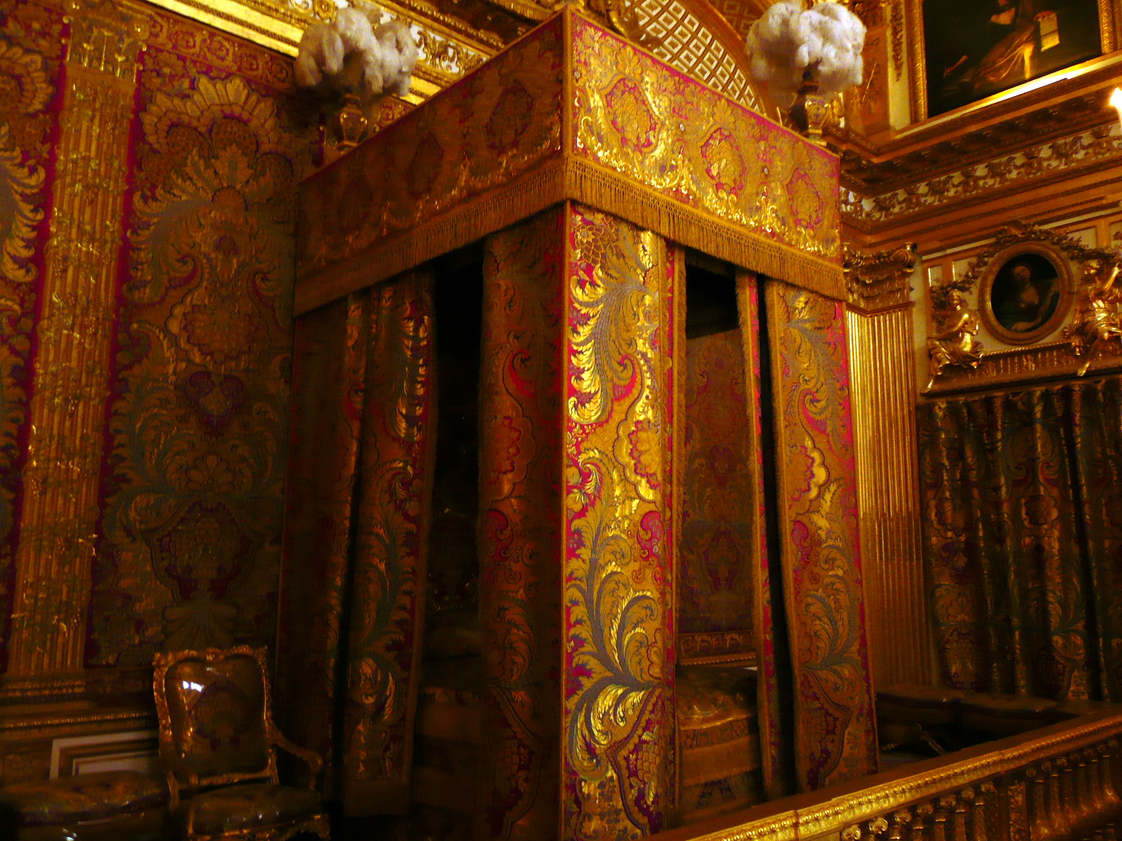 It cost us each $13.50 to get into the Palace and we enjoyed admiring the interior decorating in the castle. The rooms are so gaudily decorated that it was hard to follow the objects that are 3D in the monotonous matching colour scheme. For example, if King Louis XV did not have these feather sticking out of his bed then you wouldn't even be able to tell there is a bed in this room. The rich red and gold bed spread and be curtains exactly match the carpet, the window curtains, chairs and the wall paper too. King Louis XV died in this bed on Sept 01, 1715.