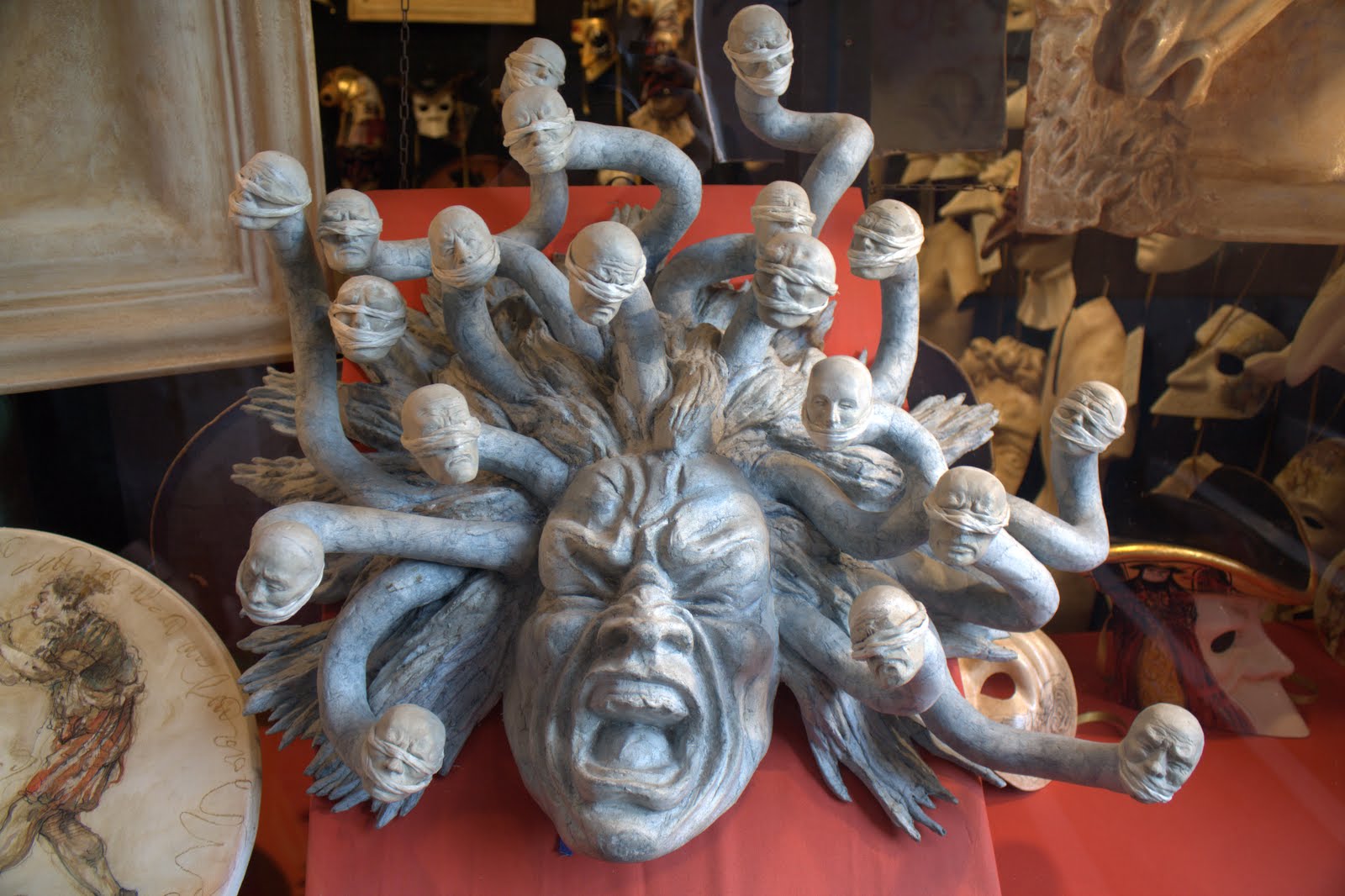Most of the stores sold various glass figurines. We saw Santa in a gondola and many Pinocchios. I bought a small glass rubber duck. In one store we even saw a guy making the glass figurines. There were also many stores that sold beautiful masks. We would have loved to buy a mask for Colin's mom but there is no way we could have transported it home in once piece.