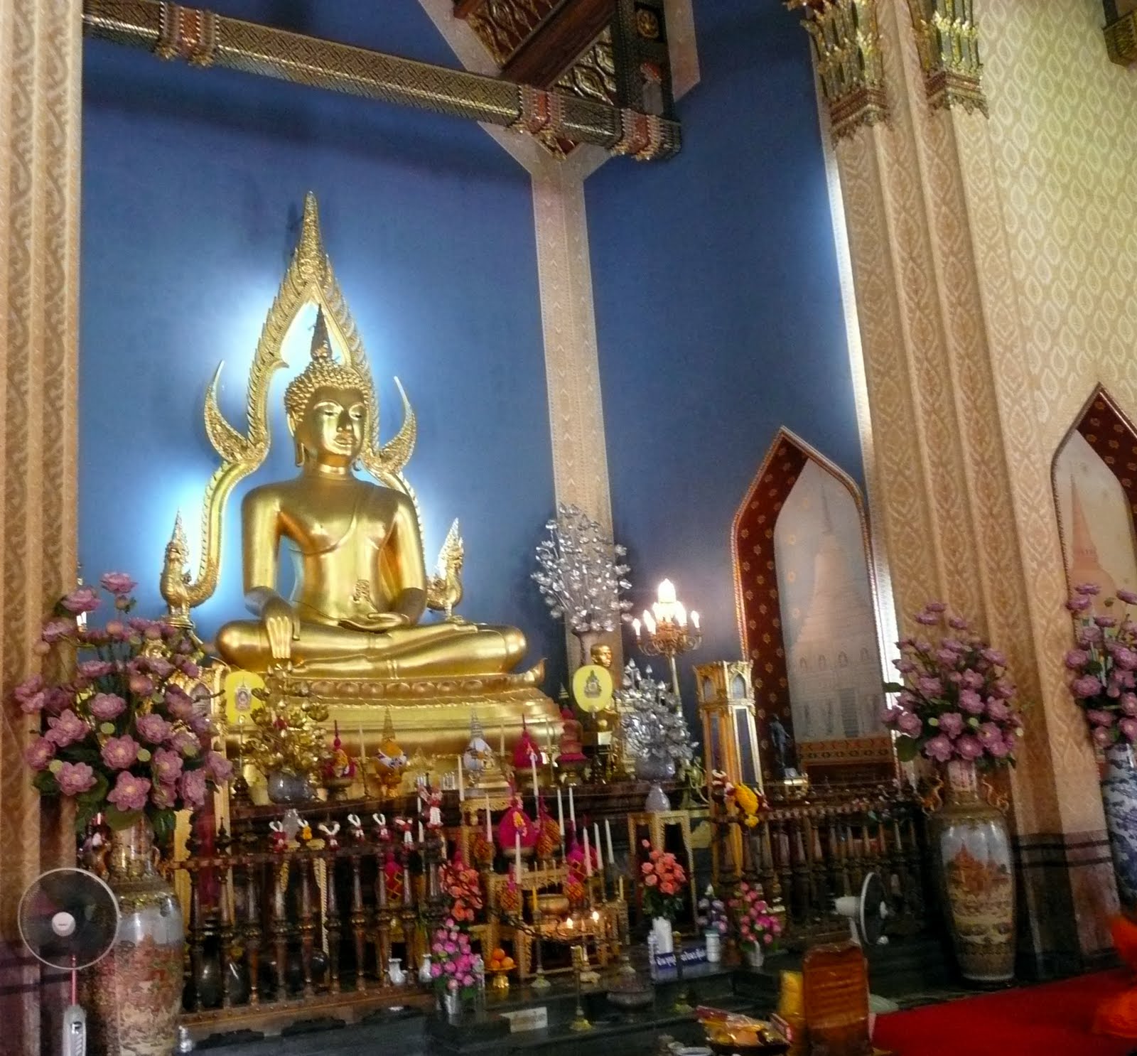 temple) was built of white marble from Italy. The name of the temple means the 5th King because this temple was built by the 5th king. When you enter the temple to see the buddha, be sure to observe the buddha wall paper too. There is also a buddha museum here too where you can view many buddhas in various attitudes (positions). Some of the buddhas have really long ears and long ears = a long life.