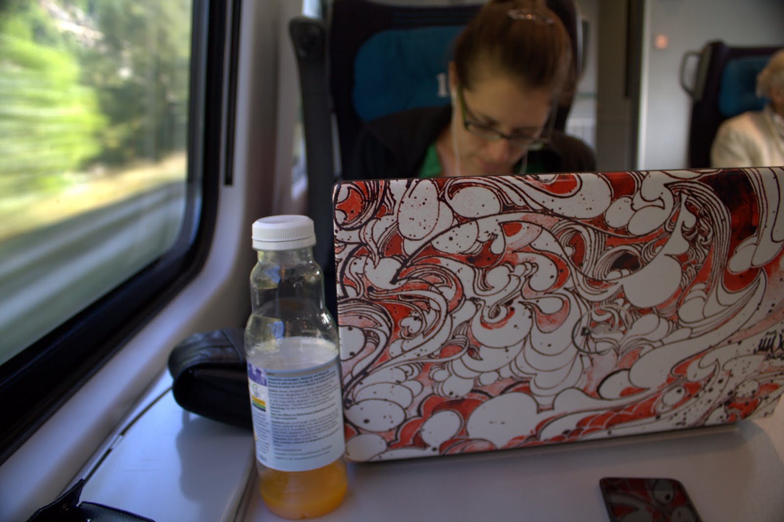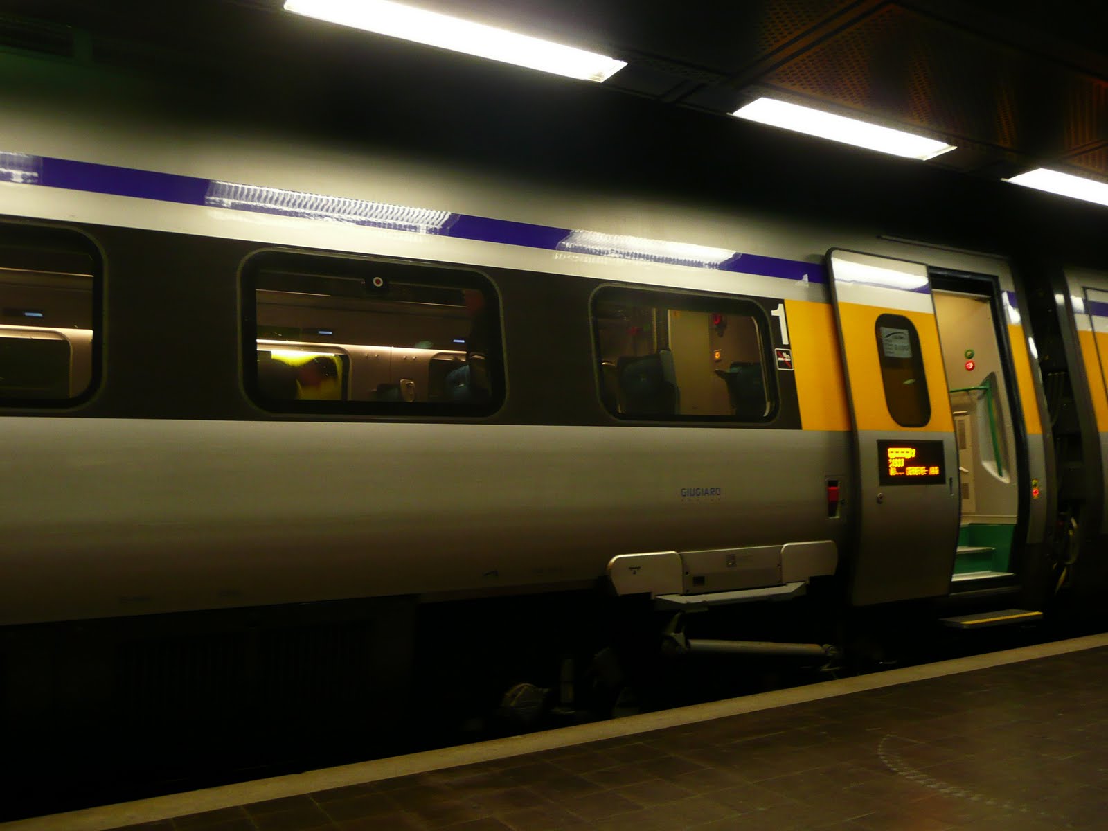 The bonus of our coach is that each seat has a plug-in but we sometimes loose laptop power through tunnels. The toilet on this train does not drain to directly below the car (the other trains we were on did).