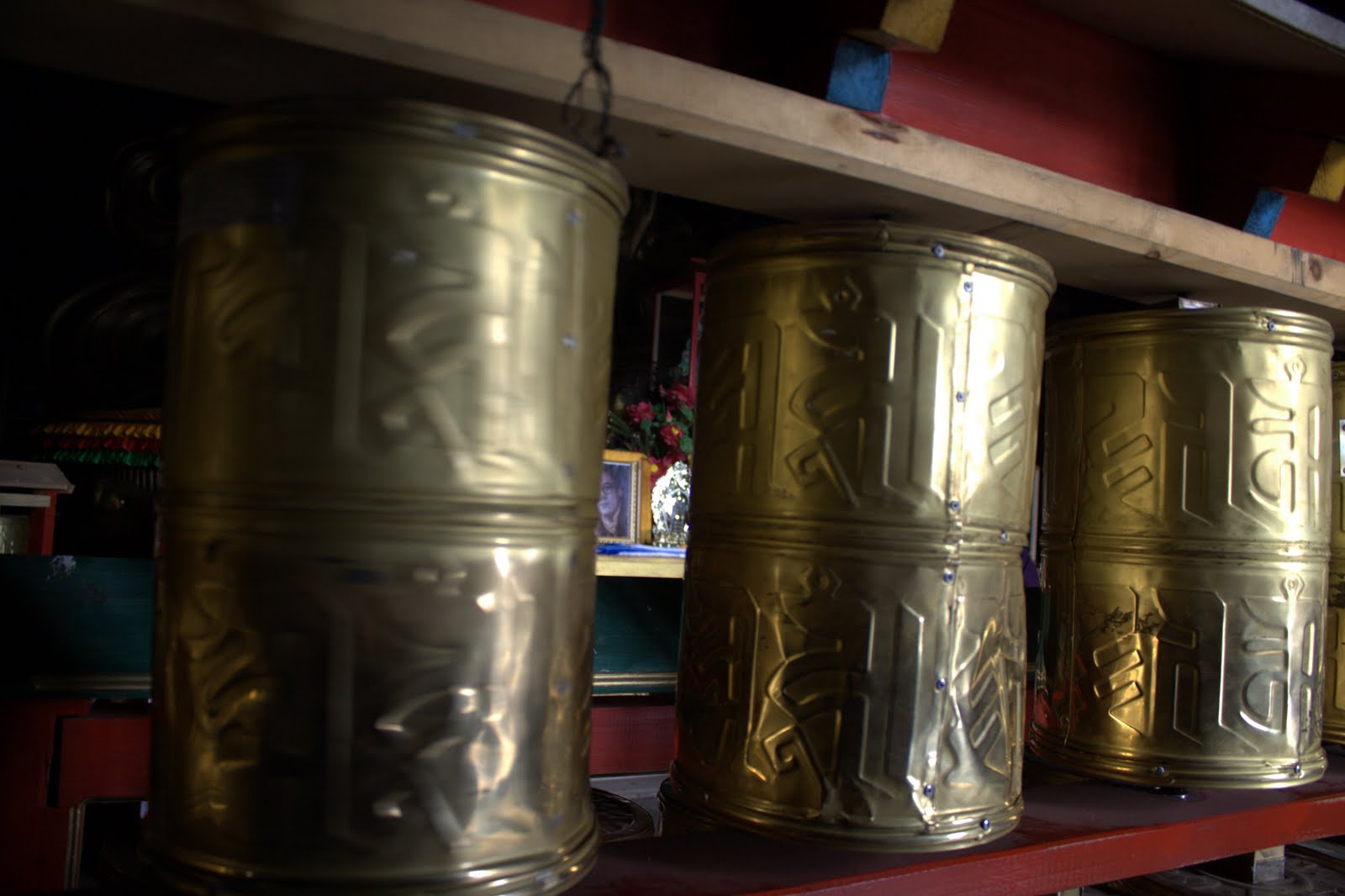 Lord). The statue weighs 90 tons. It's also surrounded by 1000s of smaller buddha statues and many Prayer Wheels. The Prayer Wheels are spun in a clockwise direction and are usually spun 3 times. They are beautiful and made of a shiny gold. You can also dedicate the prayer wheels to people by paying to attach a plaque to the prayer wheel. It's the first buddha we've seen in a monastery. Our tour guide asked us if we have any temples in Canada and we didn't know, so we decided to check and there are a few.