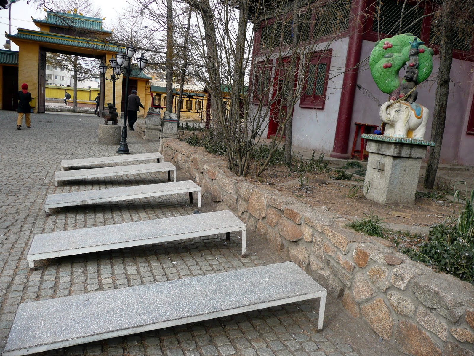 Colin and I visited our first monastery the Gandan Monastery. Inside the grounds there were many people feeding pigeons. We went inside one of the temples and smelled Juniper while a whole bunch of monks were chanting. We felt quite out of place but it was a neat experience. We walked around the monastery in a clockwise direction and we walked out of the monastery backwards. This is so you are not turning your back on the buddha.