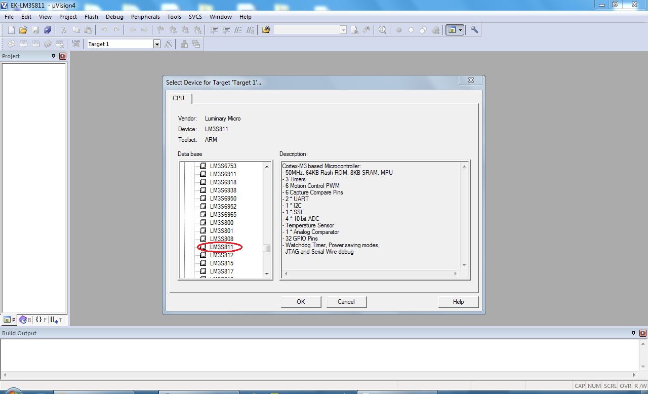 Select device as LM3S811: