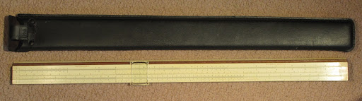 I got this from a friend whose young son had gotten hold of it and somewhere lost the cursor. It should have an all-glass cursor. Thanks to Clark McCoy, you can see what this rule looks like when outfitted with the proper cursor. But even without it, it's a nice old rule.
