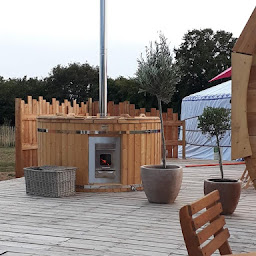 Une yourte d'hôtes pour 4 personnes avec son espace cuisine (2 taques de cuissons, un petit four micro-onde grill, vaisselles et casseroles) sa terrasse et son accès direct à l'espace bien-être. Un lit double et un sofa convertible pour 2 personnes. Un chauffage électrique. Une salle de bain avec douche, WC, lavabo.