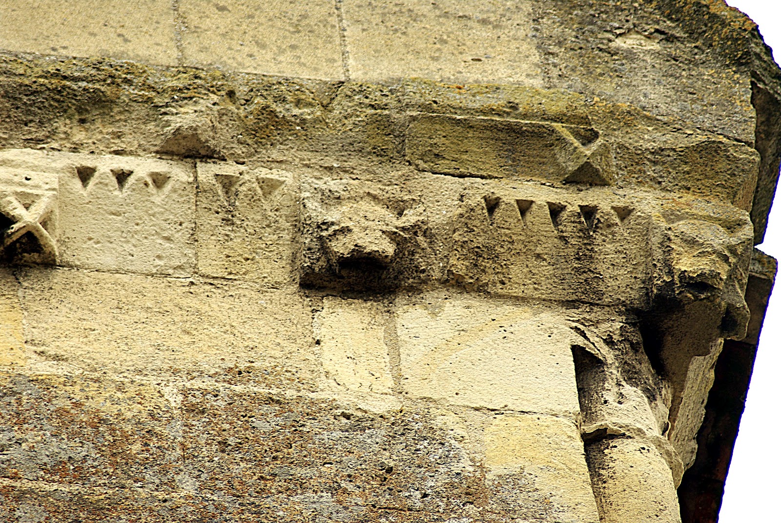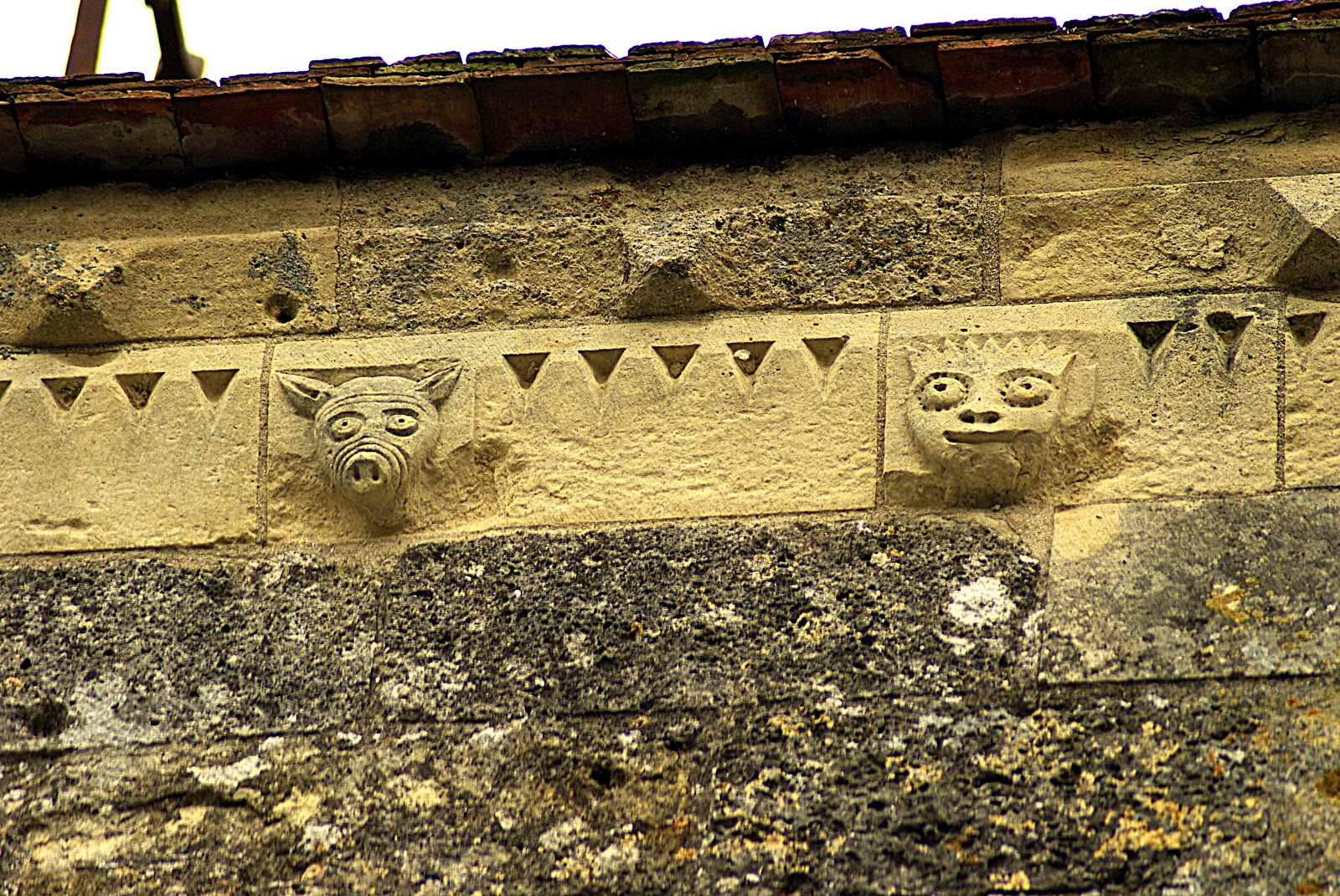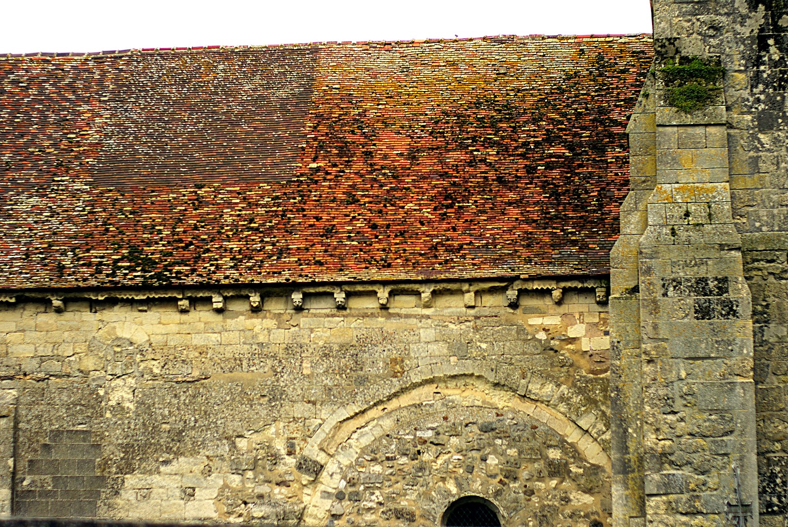 Très belle frise de petits modillons et de métopes le long de la nef sous le toit