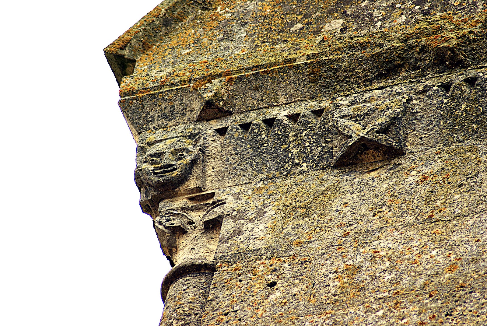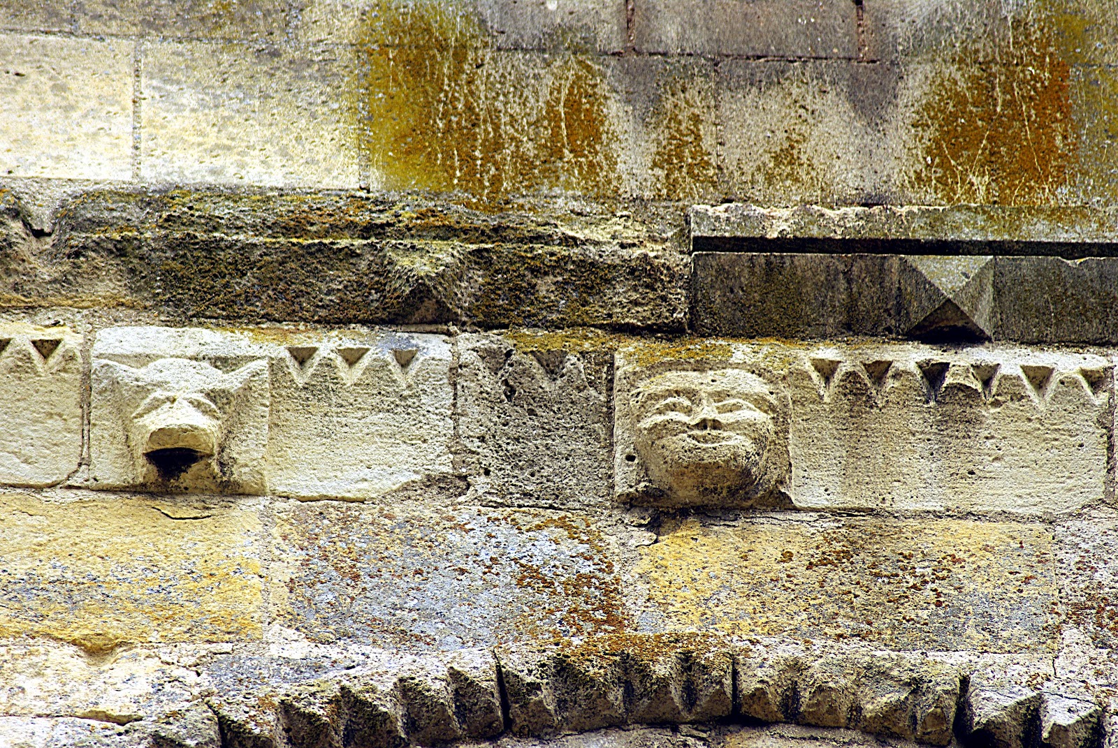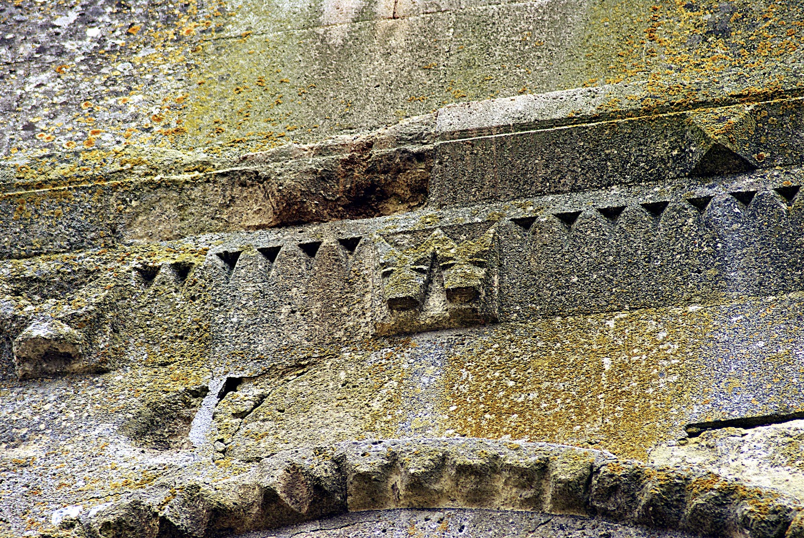 Très belle frise de petits modillons et de métopes le long de la nef sous le toit