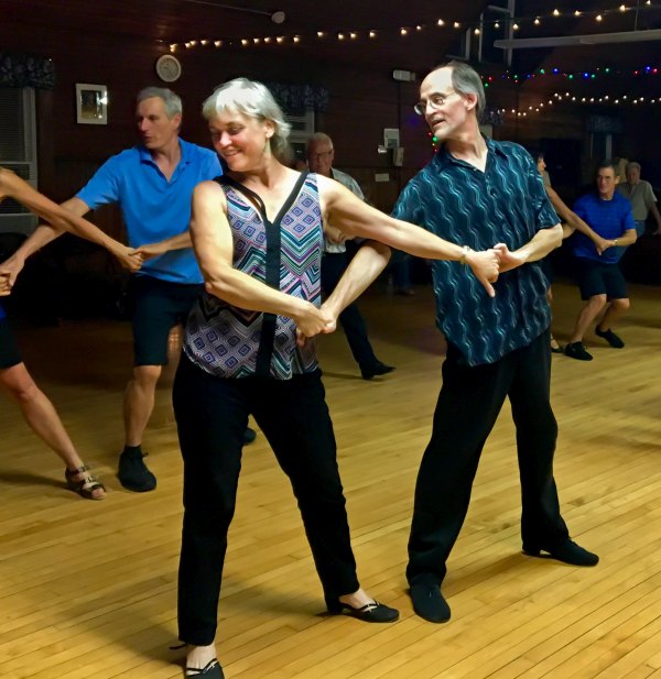 We've taught cross-step and rotary waltz for groups such as the New England Folk Festival Association, Mostly Waltz in Philadelphia, Dance Lovers of Central New York, Ithaca Swing Dance Network, Country Dancers of Rochester, and Hands Four Dancers of Ithaca. We've also taught nightclub two-step, East Coast swing, and salsa for various groups in upstate New York. Our wide-ranging studies with many dance instructors have afforded us exposure to a remarkable diversity of teaching styles, and our own pedagogy benefits greatly from our careful observation of what works well for different types of students and at different levels. We'll often attend classes at proficiency levels we're well beyond, in order to learn from the performance of accomplished teachers how we might refine our own teaching techniques. The hallmarks of our teaching include: Clarity of verbal expression; the use of relevant and well-structured exercises; excellent co-teacher rapport; and an inspiring and inclusive class vibe. Plus, our skill at understanding and conveying both the essence of a dance and the subtleties of its lead/follow connection benefits from the fact that each of us can dance both the lead and the follow roles in almost every dance we do.