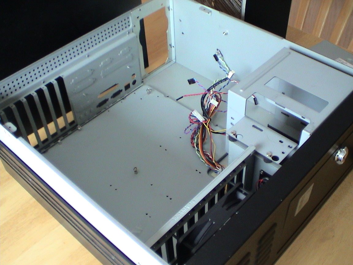 I have now powered the system up. I had to do some re-configuring of the equipment as the IDE cable was too short to go from the board to the other side of the case to attach to both the DVD drive and the temp IDE drive. So now the IDE drive is sitting sideways about 1/2 way between the motherboard connection and the DVD drive.