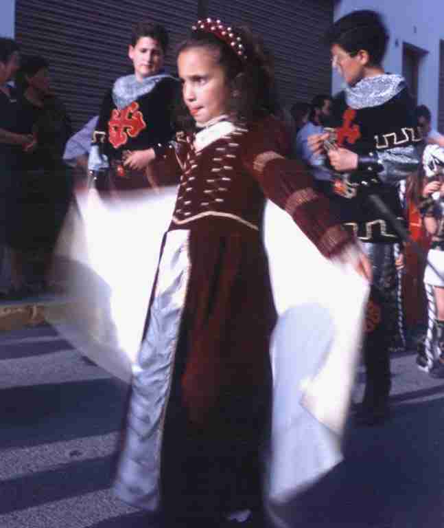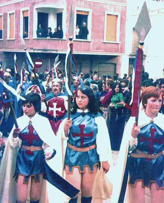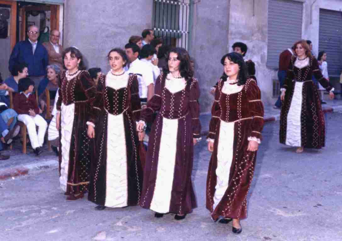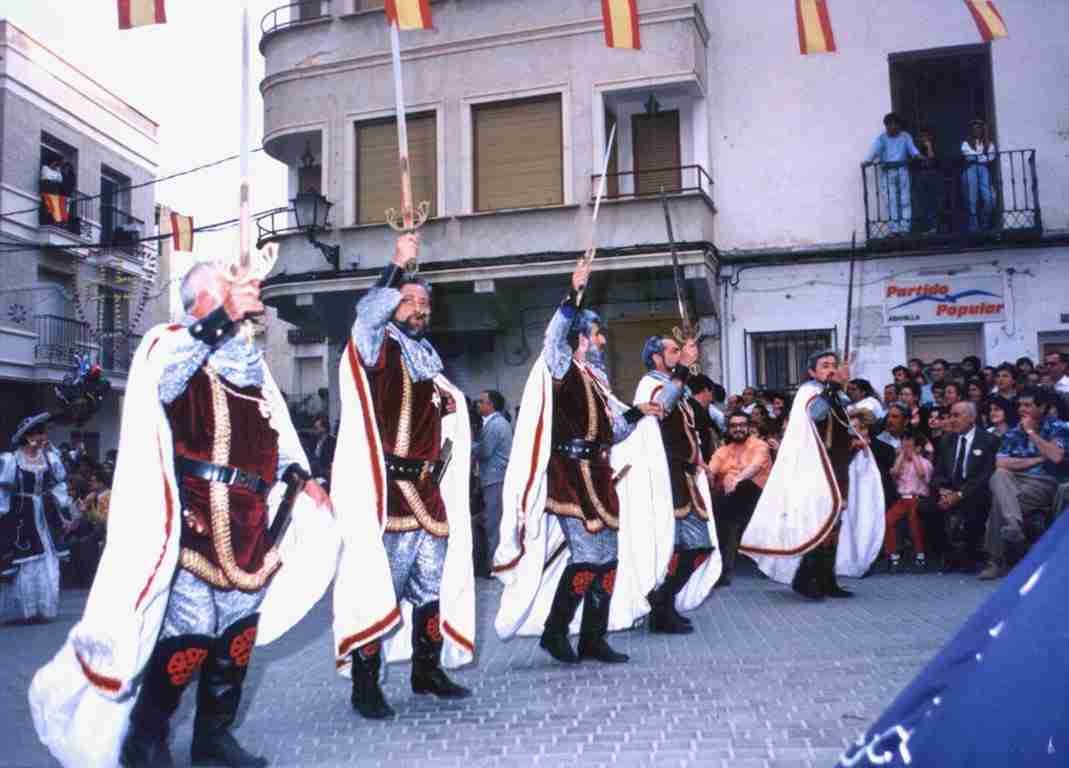 La memoria de los más veteranos recuerdan como en los primeros años, y con unos trajes más bien vanguardistas desfilaban únicamente dos grupos Calatrava y Jaira. Hoy en día la Mesnada del rojo, azul, blanco, negro, dorado y plata desenfunda las espadas acompañada de otros muchos grupos para alegrar las calles de la Villa en estas fiestas tan queridas por los abanilleros.