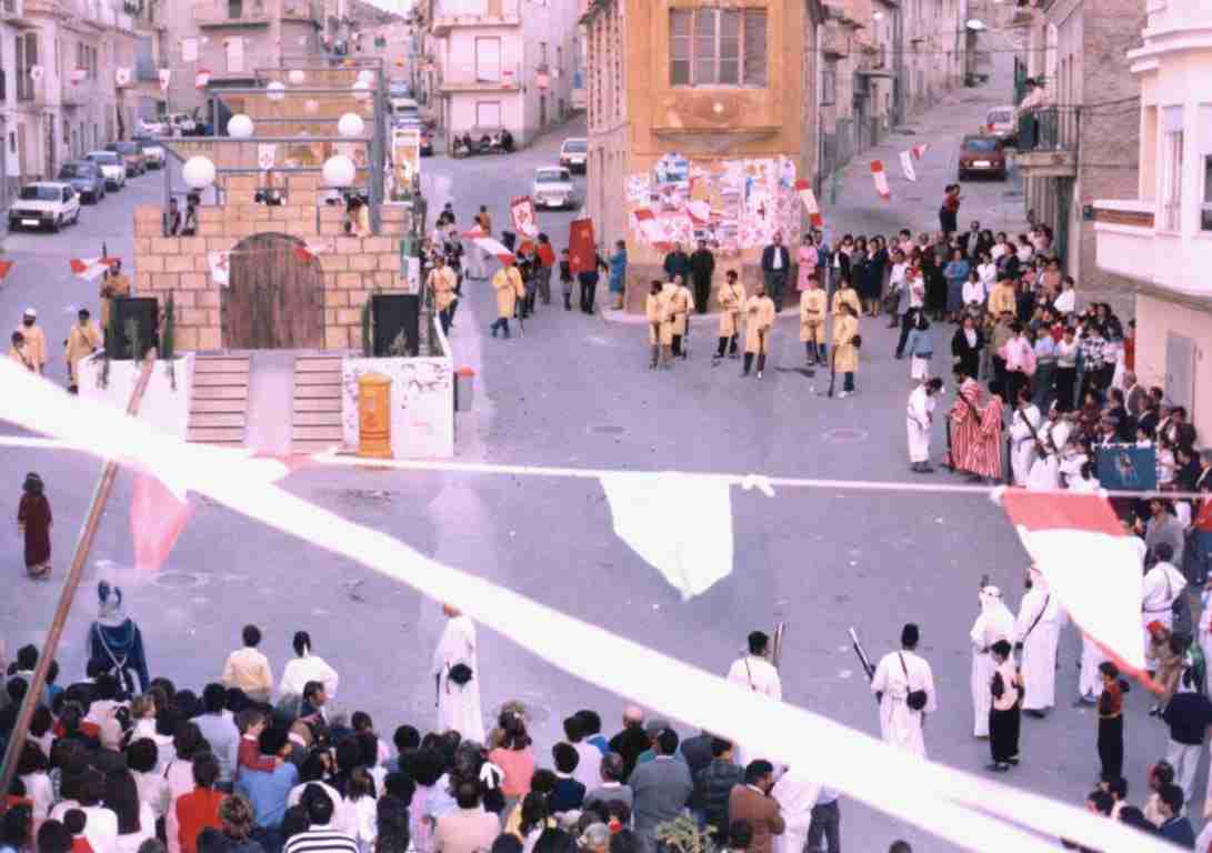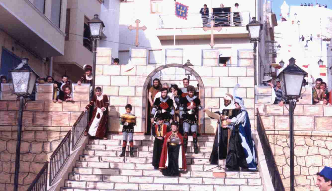 Pasaba un día siendo el castillo moro, cuando subía el bando cristiano armado de arcabuces y a tiros reclamaban la nueva posesión del castillo. El bando moro defendía el castillo desde las almenas de éste, como anteriormente había hecho el bando cristiano.