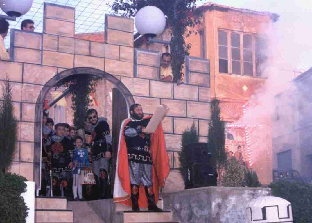 Cuando nuestras fiestas empezaban a despuntar y queríamos entrar en la UNDEF, uno de los requisitos era tener un motivo histórico en nuestras fiestas que las avalasen. Así, fue a Eugenio Marco a quien le correspondió redactar el libreto en el que se narraba la toma y conquista del Castillo de Abanilla.