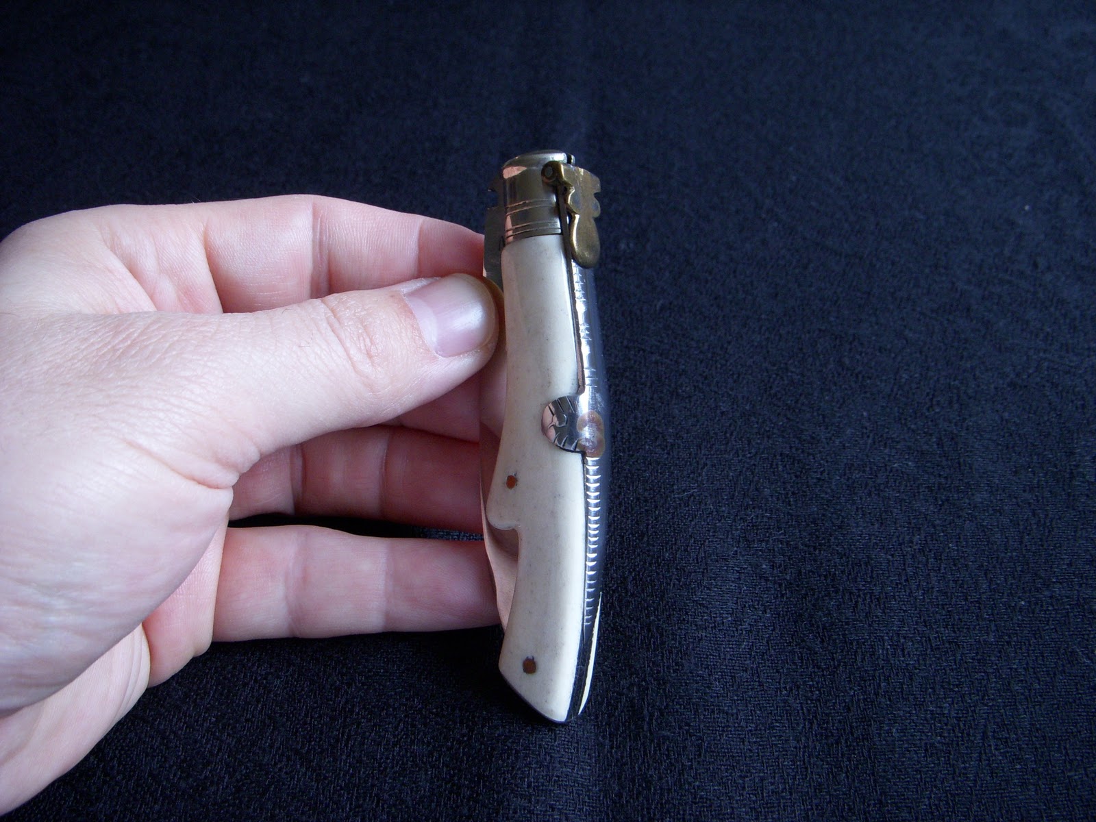 Esta navaja imita la pata de un corzo. Como no encontraba mi padre las patas del corzo, las cambió por asta, dándole la misma forma.