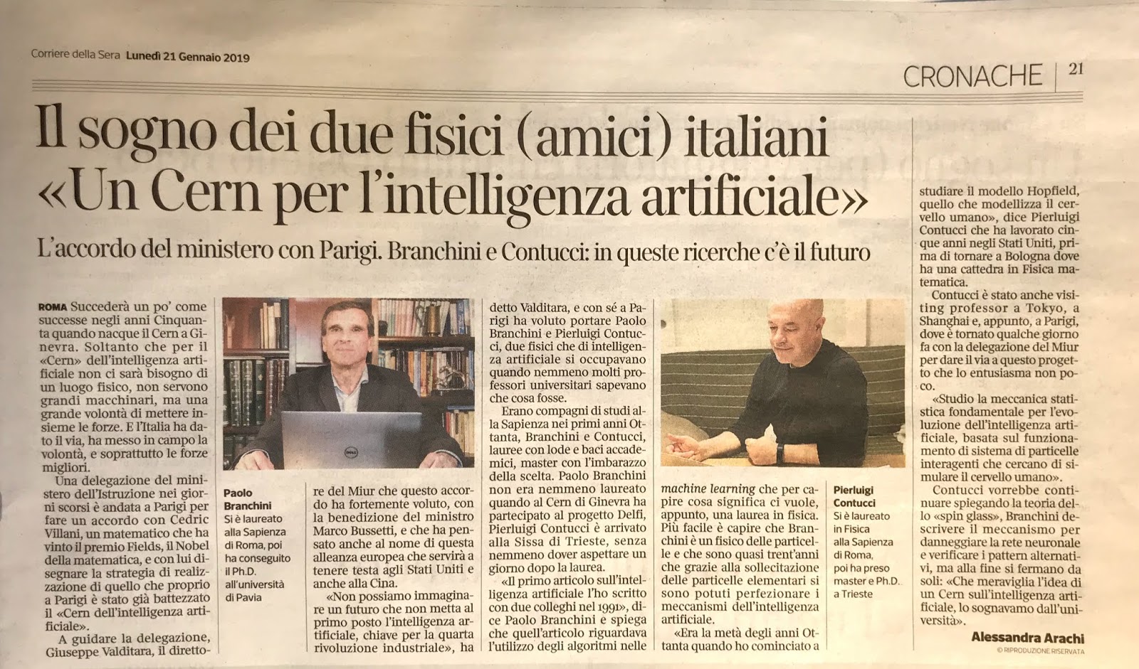 Intelligenza artificiale: Corriere della Sera 21 gennaio 2019