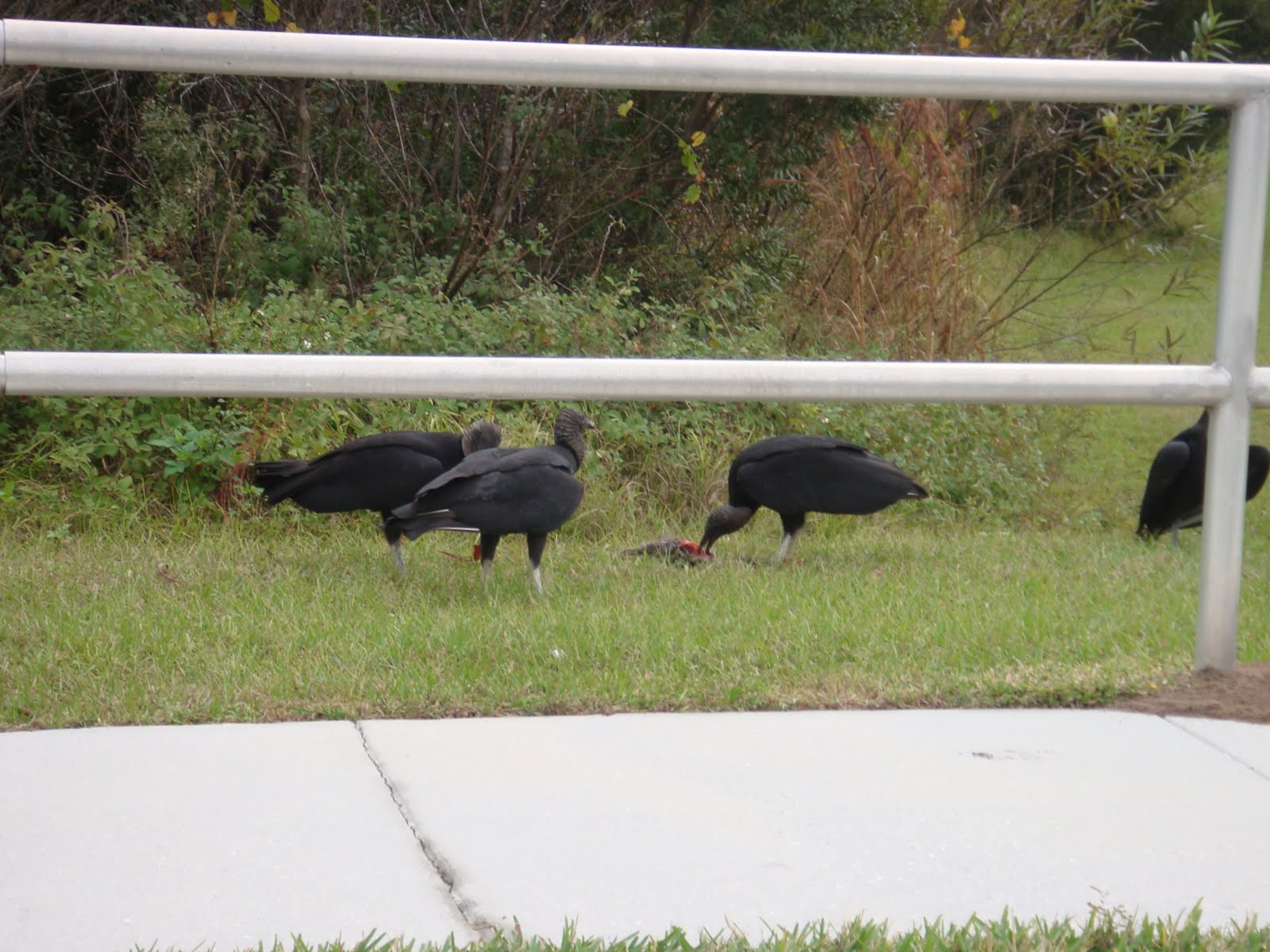 Not something you see every day - what I assume is a pack of Buzzards finishing off something on the grassland. They are pretty large!