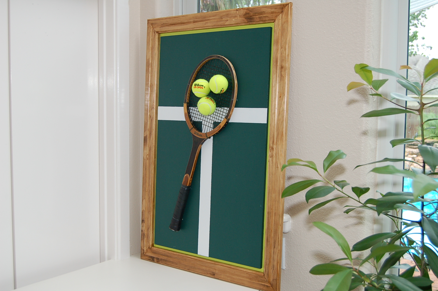 An old wooden tennis racket, circa early 1980s, was spared from the dumpster and now has its place as a relic of days gone by. That was when when skill and grace and tennis went together.
