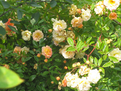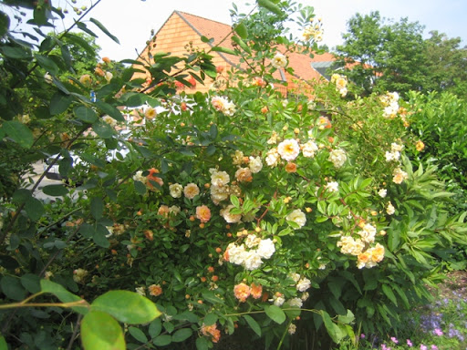 Diese Rose habe ich bei mir als Hochstamm. 2007 in einer Baumschule als kümmerliches Überbleibsel am Ende der Saison erstanden, nahm ich sie mehr aus Mitleid mit. Aber sie hat sich so gut entwickelt, dass sie unseren Garten mir ihren wunderschönen , kleinen, gelb-apricot-rosa-weißen Blüten überschwemmt! Und das mehrmals im Jahr. Sie ist eine sehr robuste, frostharte, gesunde Strauchrose, die auch als kleiner Rambler gezogen werden kann. Bei mir duftet sie nur ganz zart, was aber an unserem Sandboden liegen kann. Ein weiterer Vorteil dieser Rose ist, dass sie sehr stachelarm ist. Also gut geeignet für Sitzplätze oder Durchgänge. Turdat 1916 |