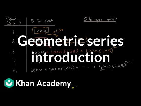 A geometric series is the sum of the first few terms of a geometric sequence. For example, 1, 2, 4, 8,... is a geometric sequence, and 1+2+4+8+... is a geometric series. See an example where a geometric series helps us describe a savings account balance.