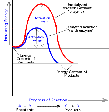 [A catalyst is a substance which speeds up a reaction, taking less time for it to occur, but isn't itself changed in the reaction. Catalysts lower the amount of energy the cell needs to provide for the reaction to take place - called the activation energy. See Diagram 1.]